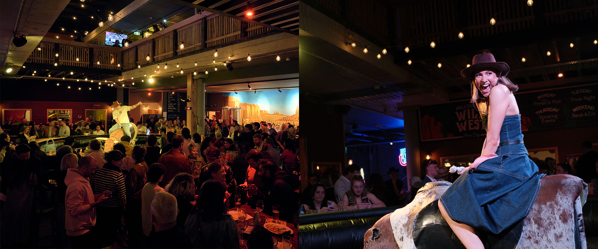 With a buckin’ mechanical bull, three mighty floors, a live music stage, DJs ‘til late, balcony beer garden, arcade games, and a pool hall, your shindig at our Wild West venue will have folks talkin’ long after the dust settles. Yeehaw!